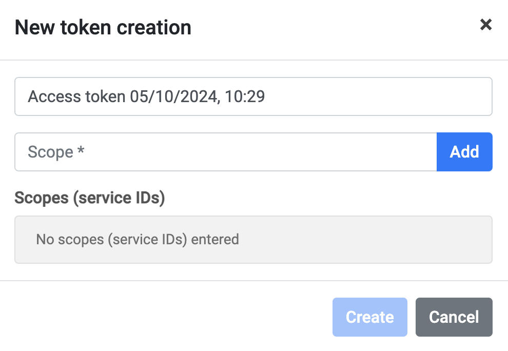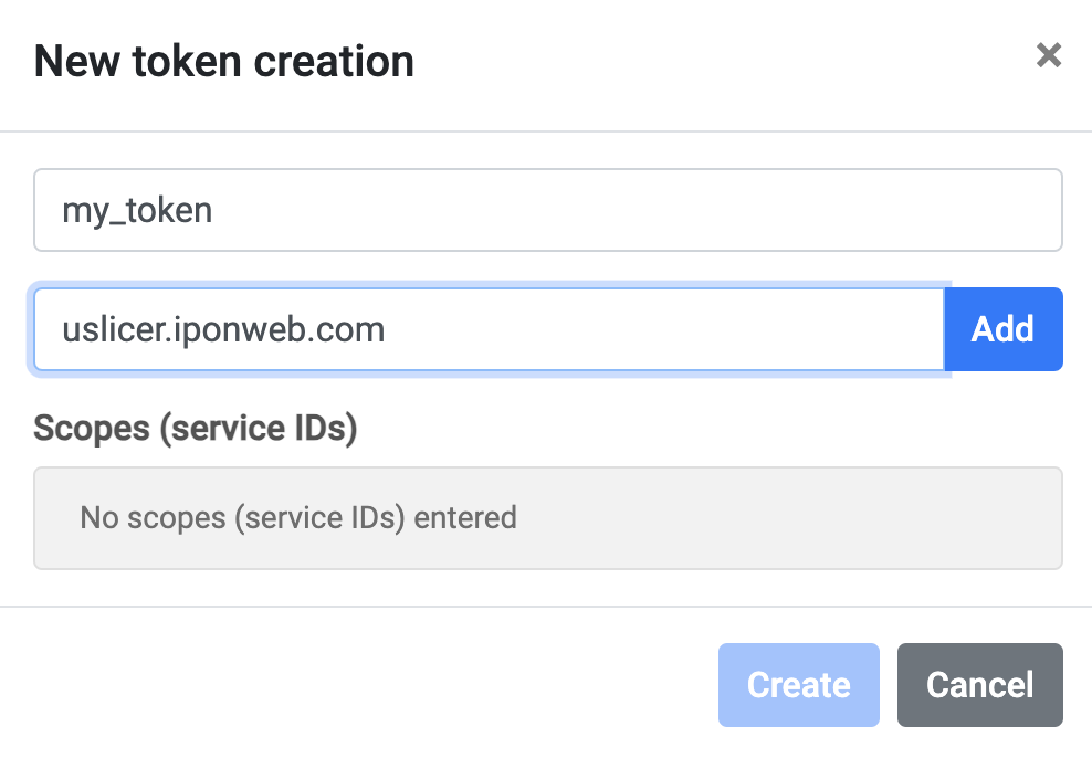 Enter token Name and Scope (uslicer.iponweb.com) in the appeared New token creation dialog box.
