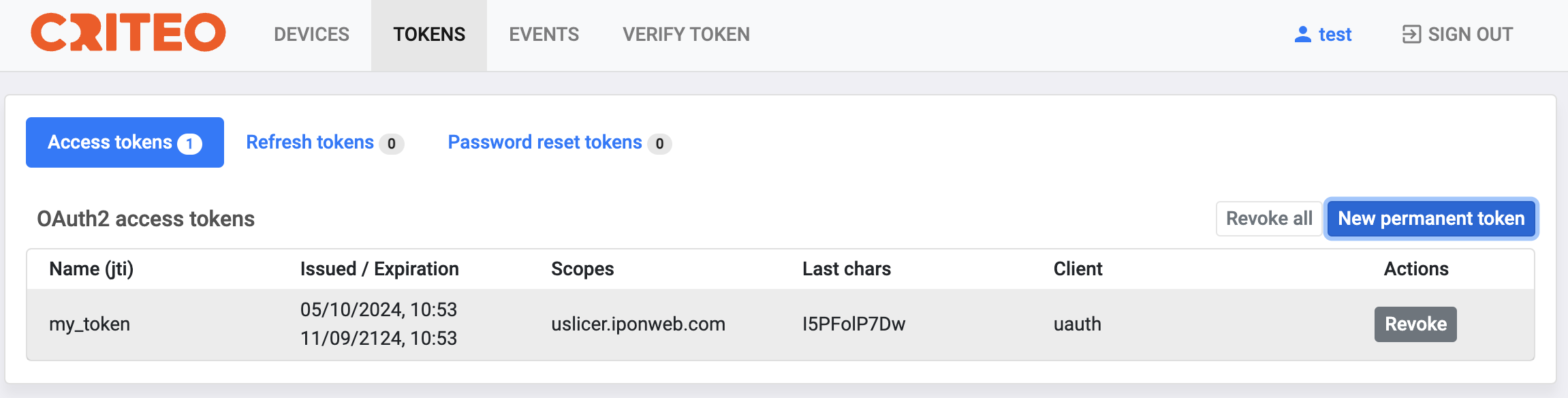 Revoking a permanent access token¶