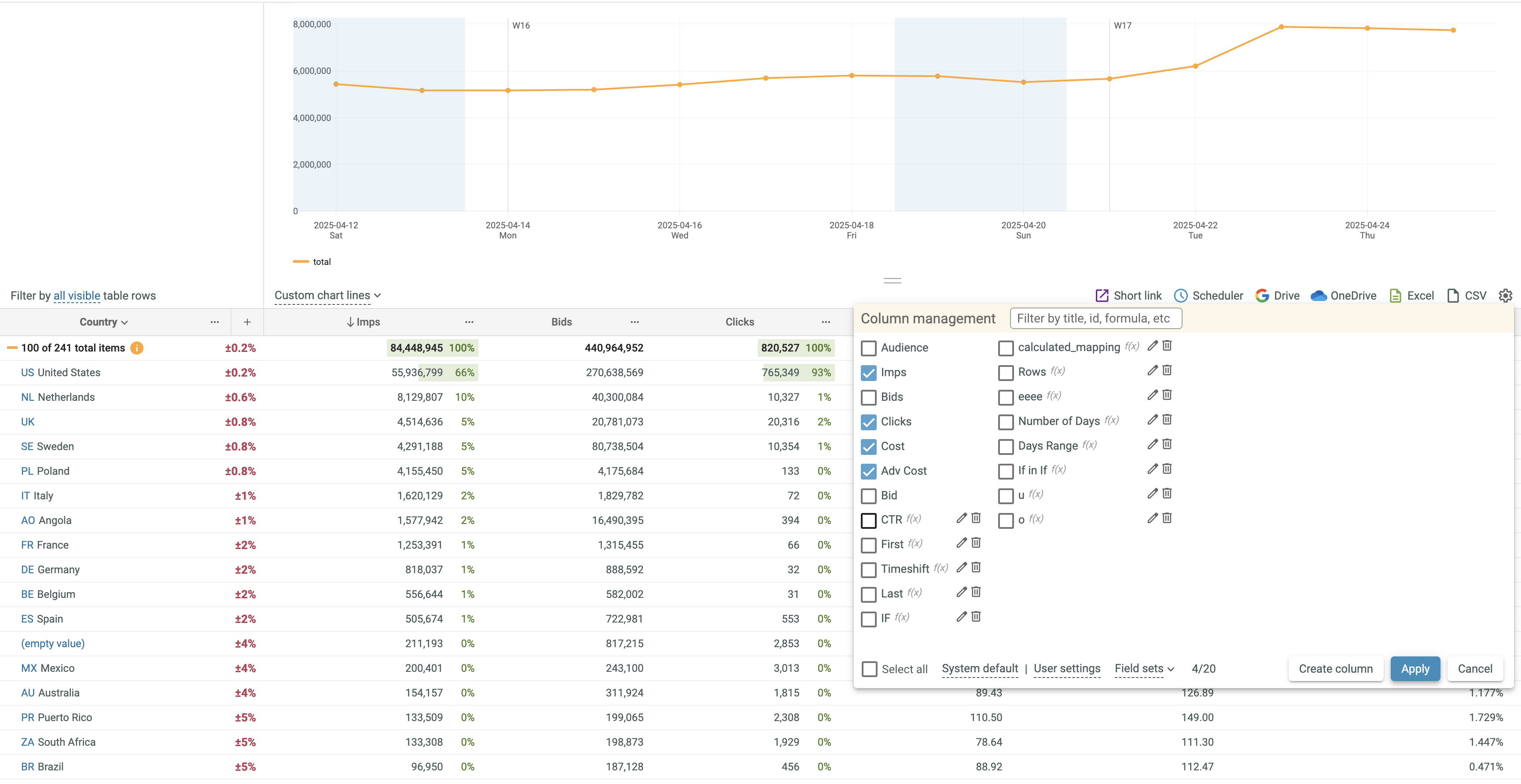 • Click the  ( Manage Columns) button in the upper right corner of the Data Table and select/deselect columns in the appeared Column management dialog box.