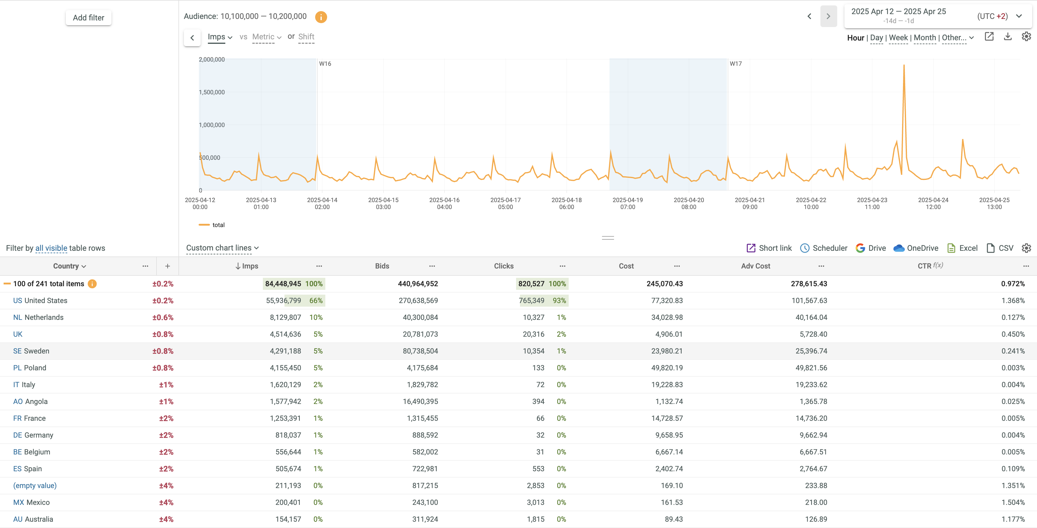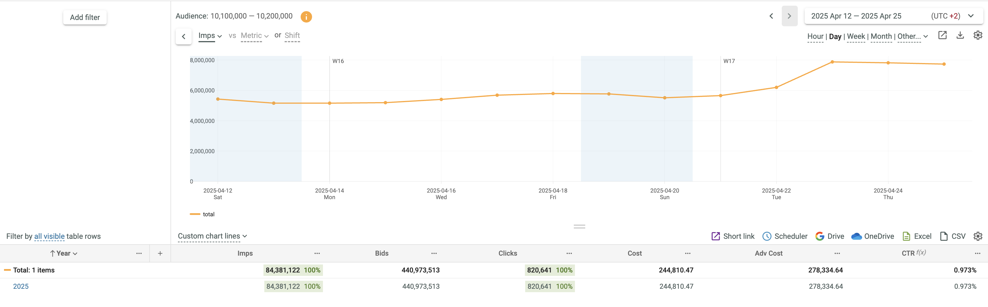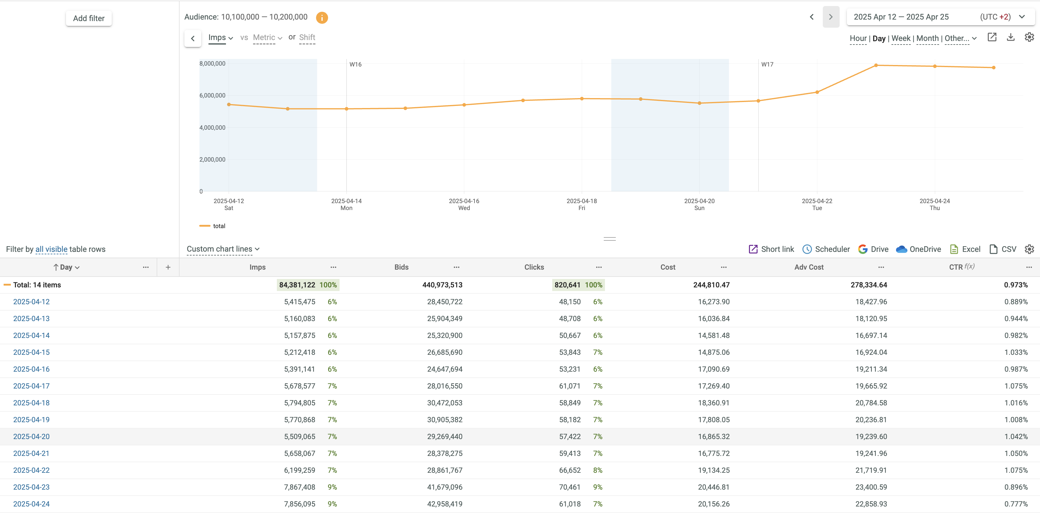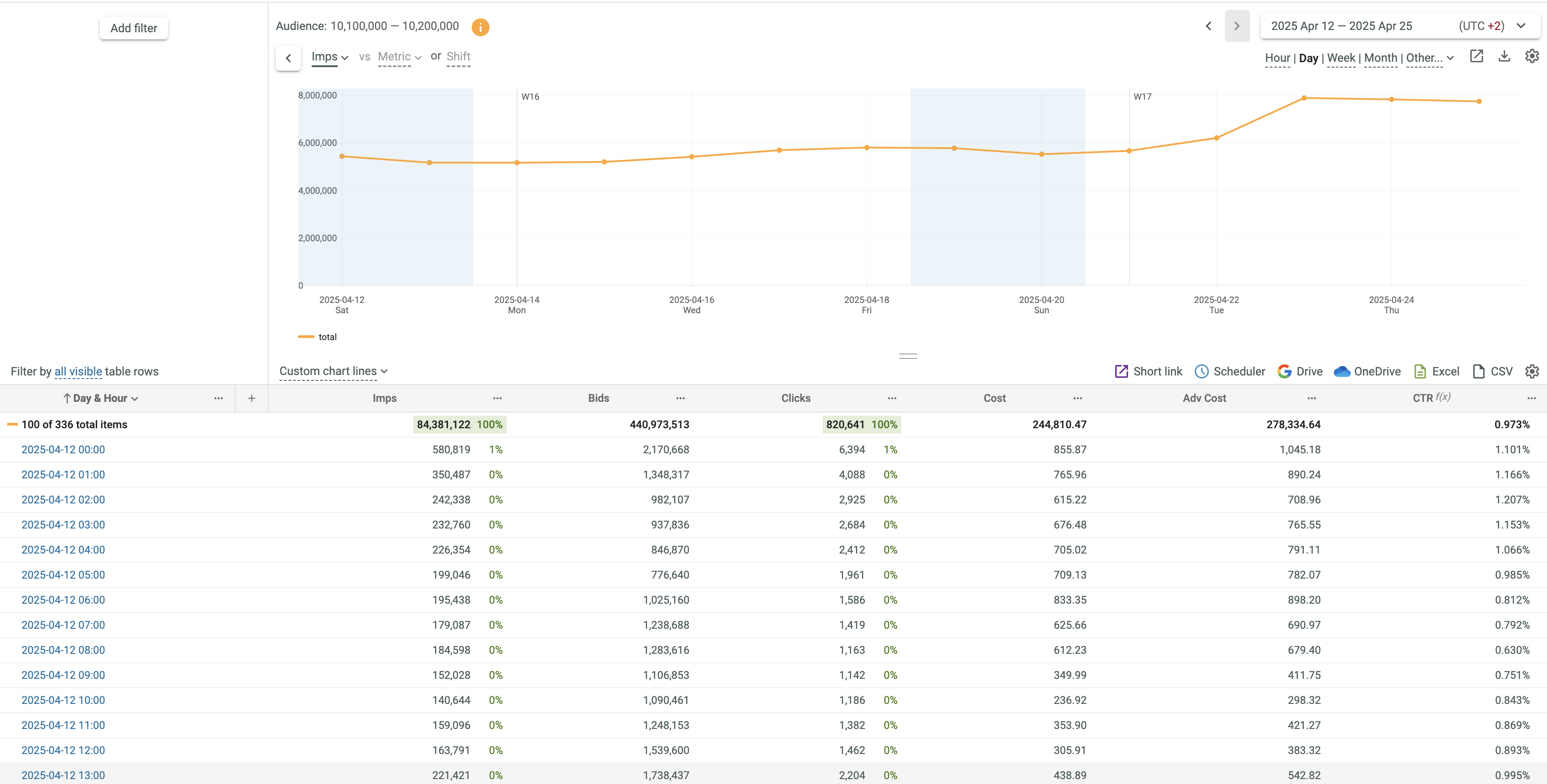 - Split by the Day & Hour key field if you need Hour Granularity.