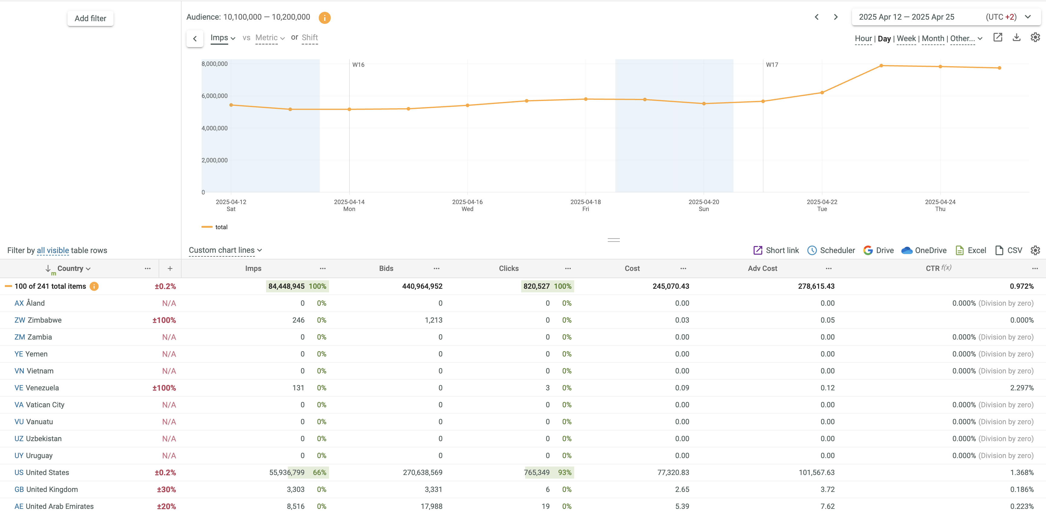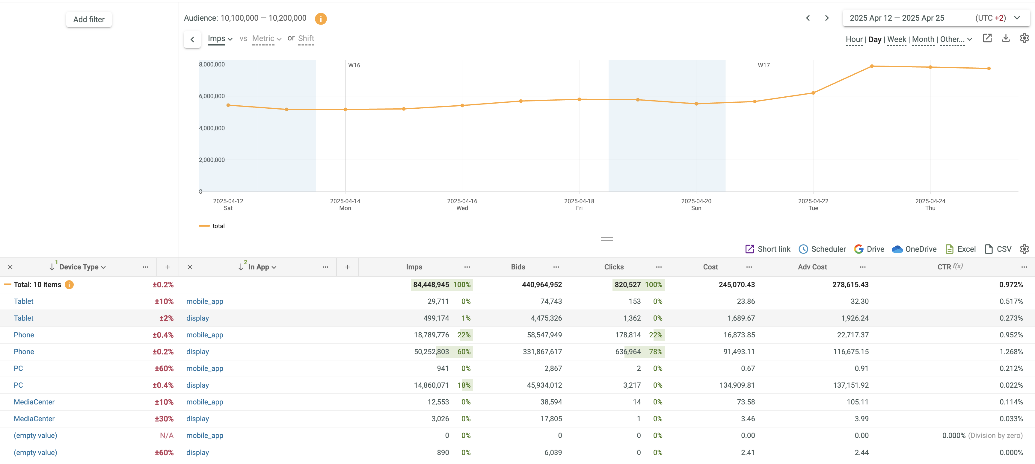 - The 1 and 2 signs in the key field headers show that sorting is performed by two columns (first by Device Type and then by Browser).