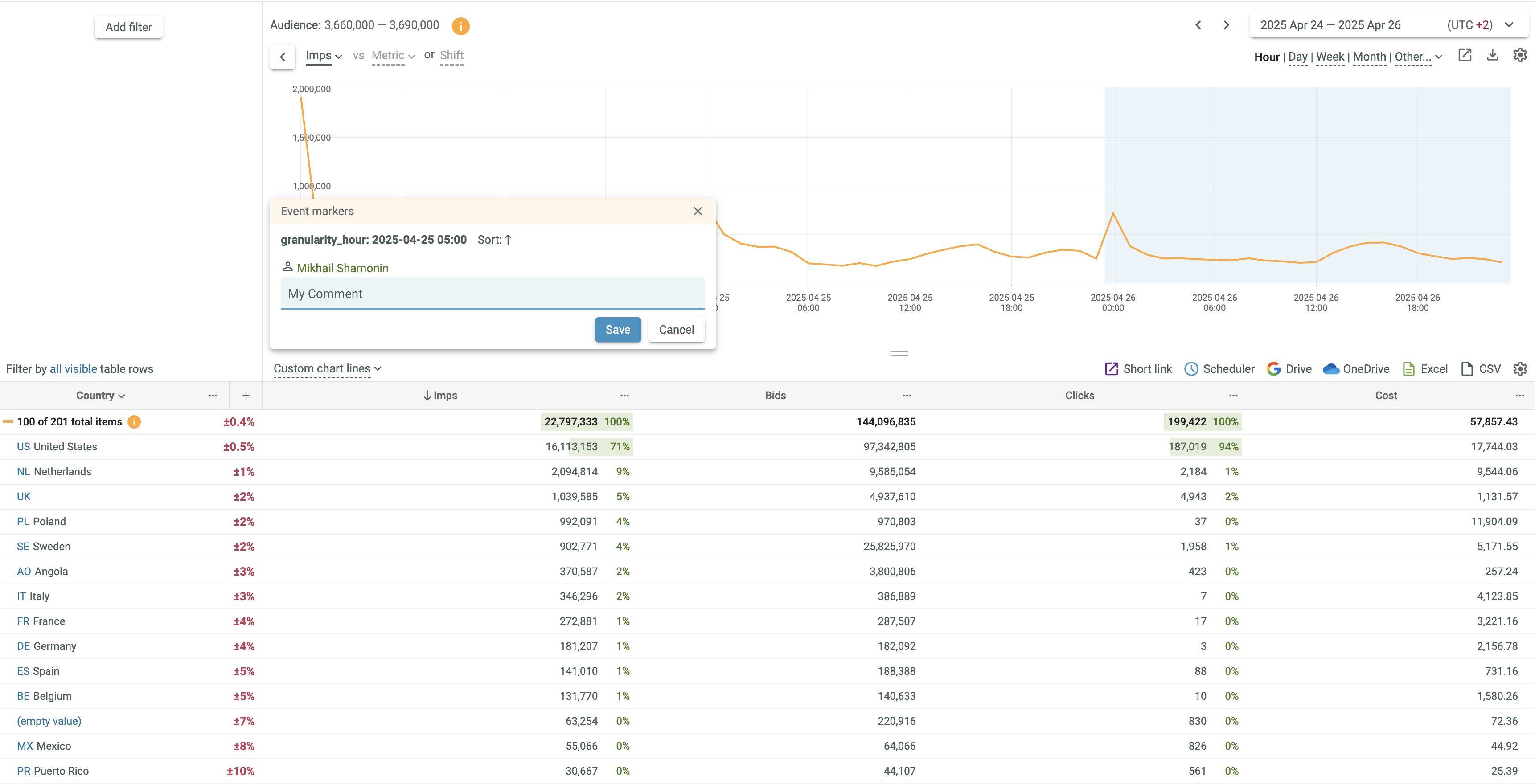 Chart event markers are very useful for making public comments to particular date points on the chart.