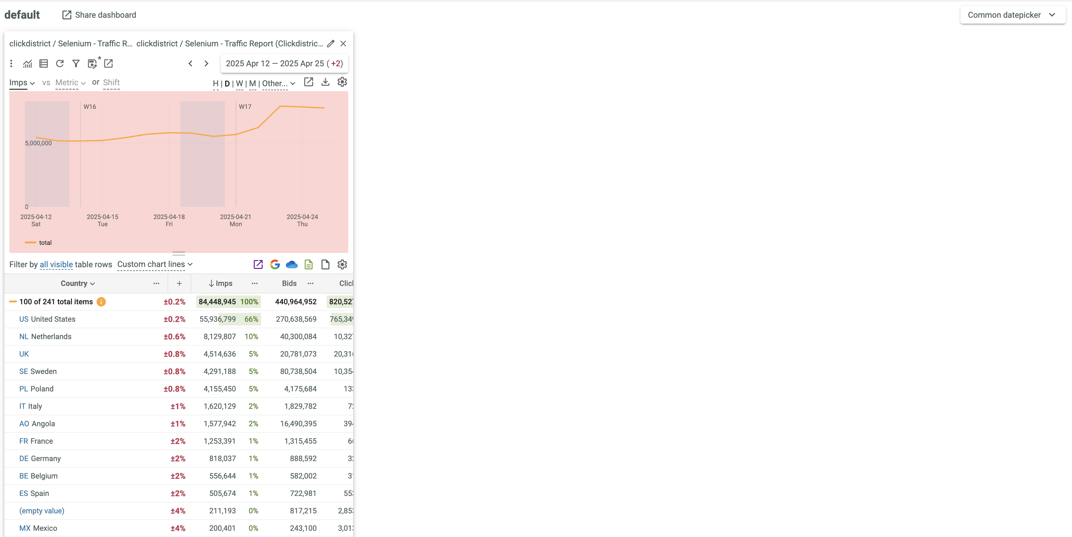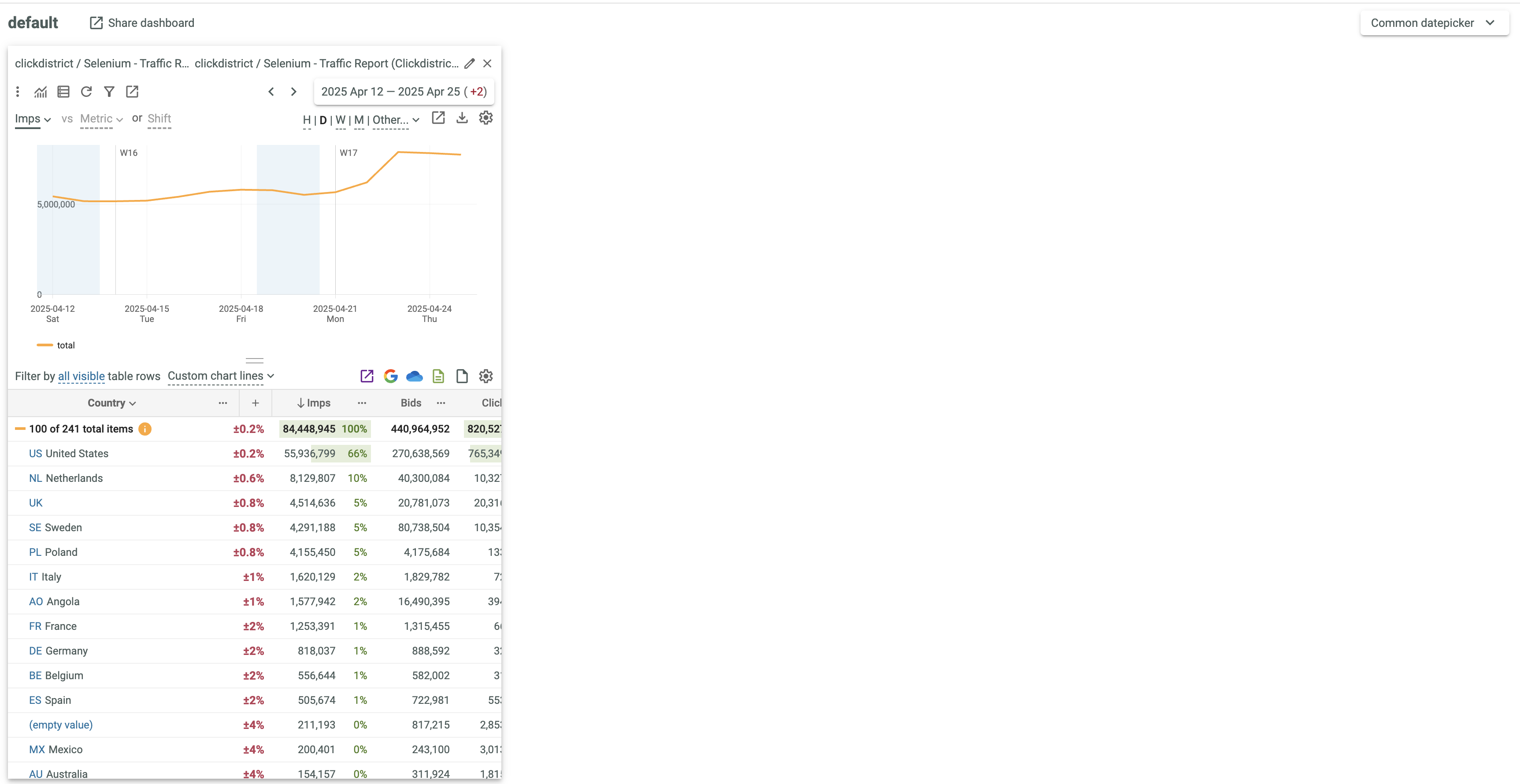If several Dashboards exist, select the required Dashboard from the drop-down list.