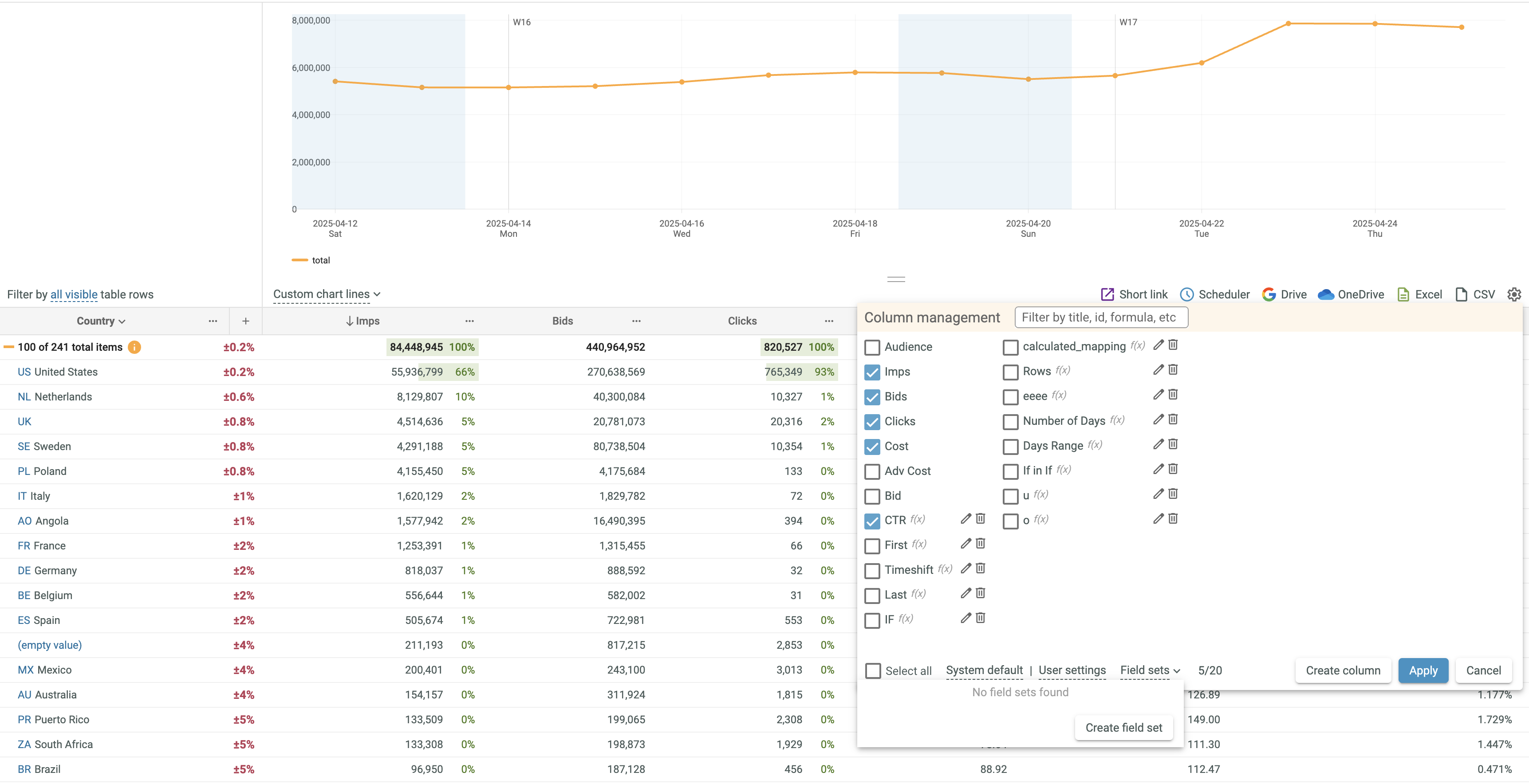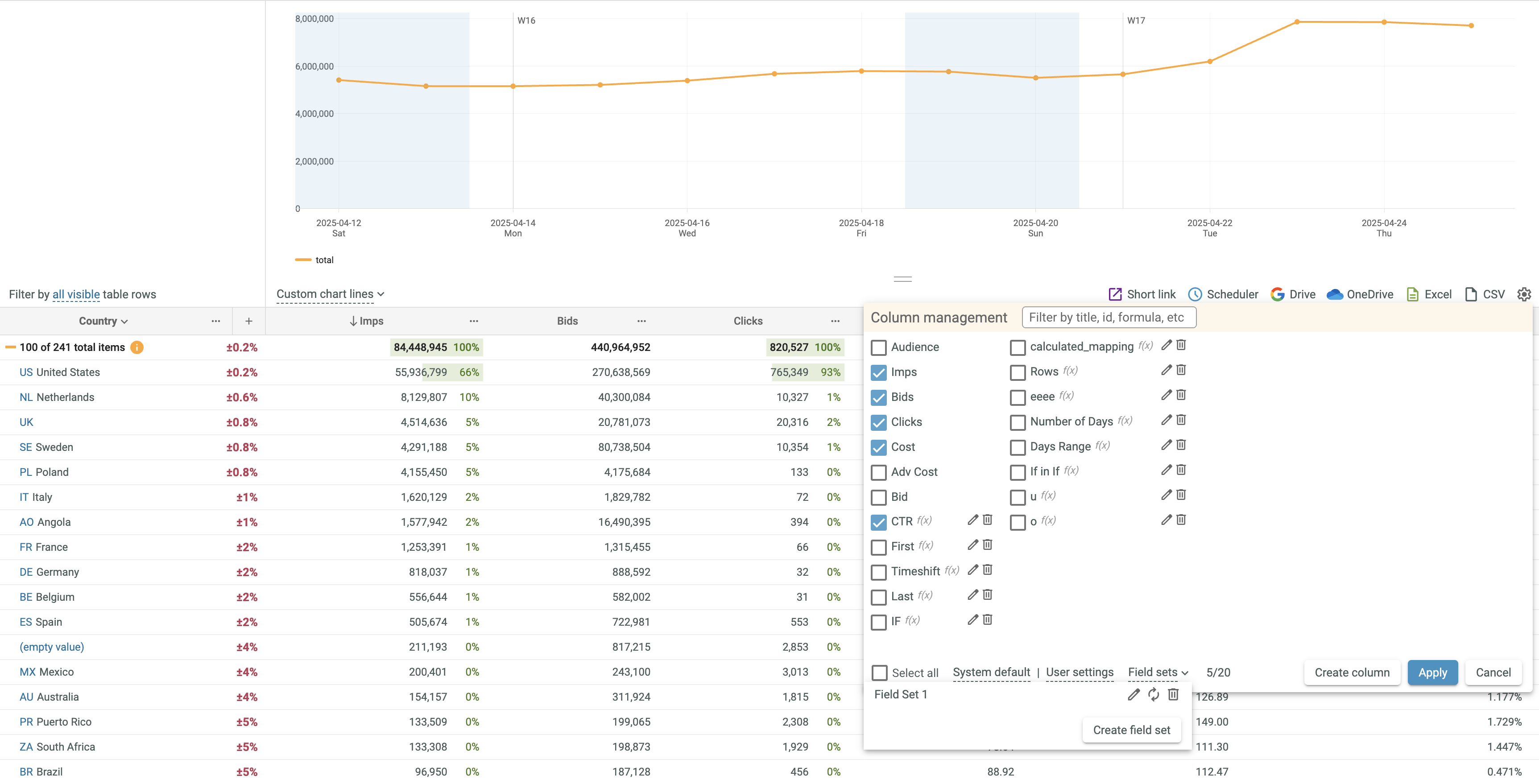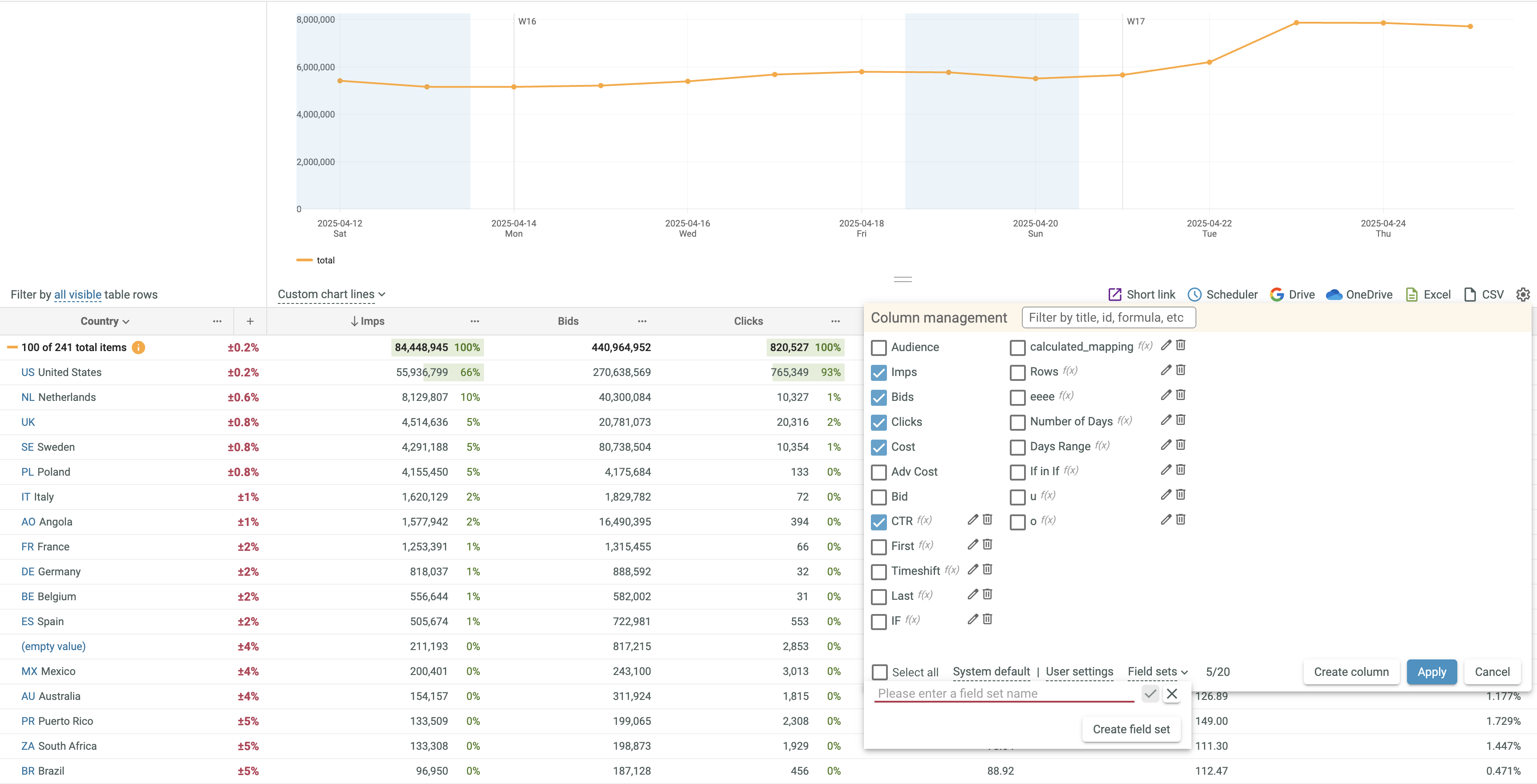 Field sets are very useful for quick selection of required data columns. Each Field set contains a predefined set of data columns.