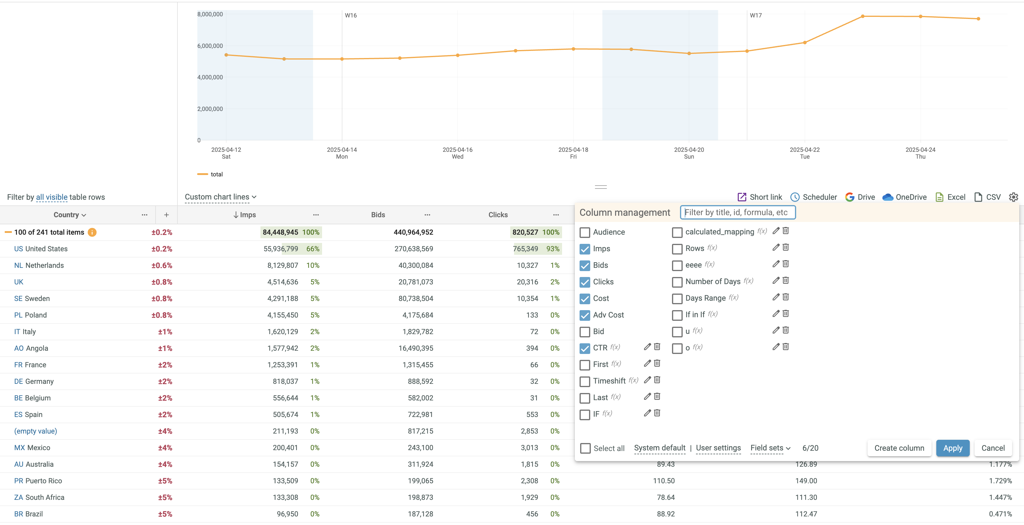 • Click the Manage columns button in the upper right corner of the Data Table to open the Column management dialog box.