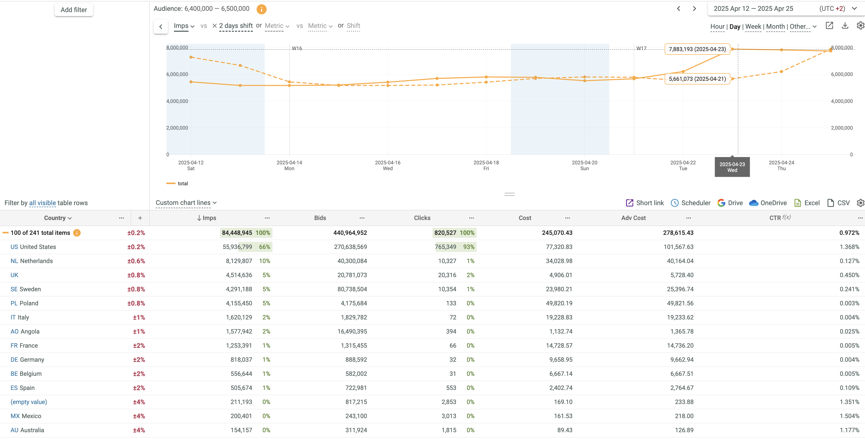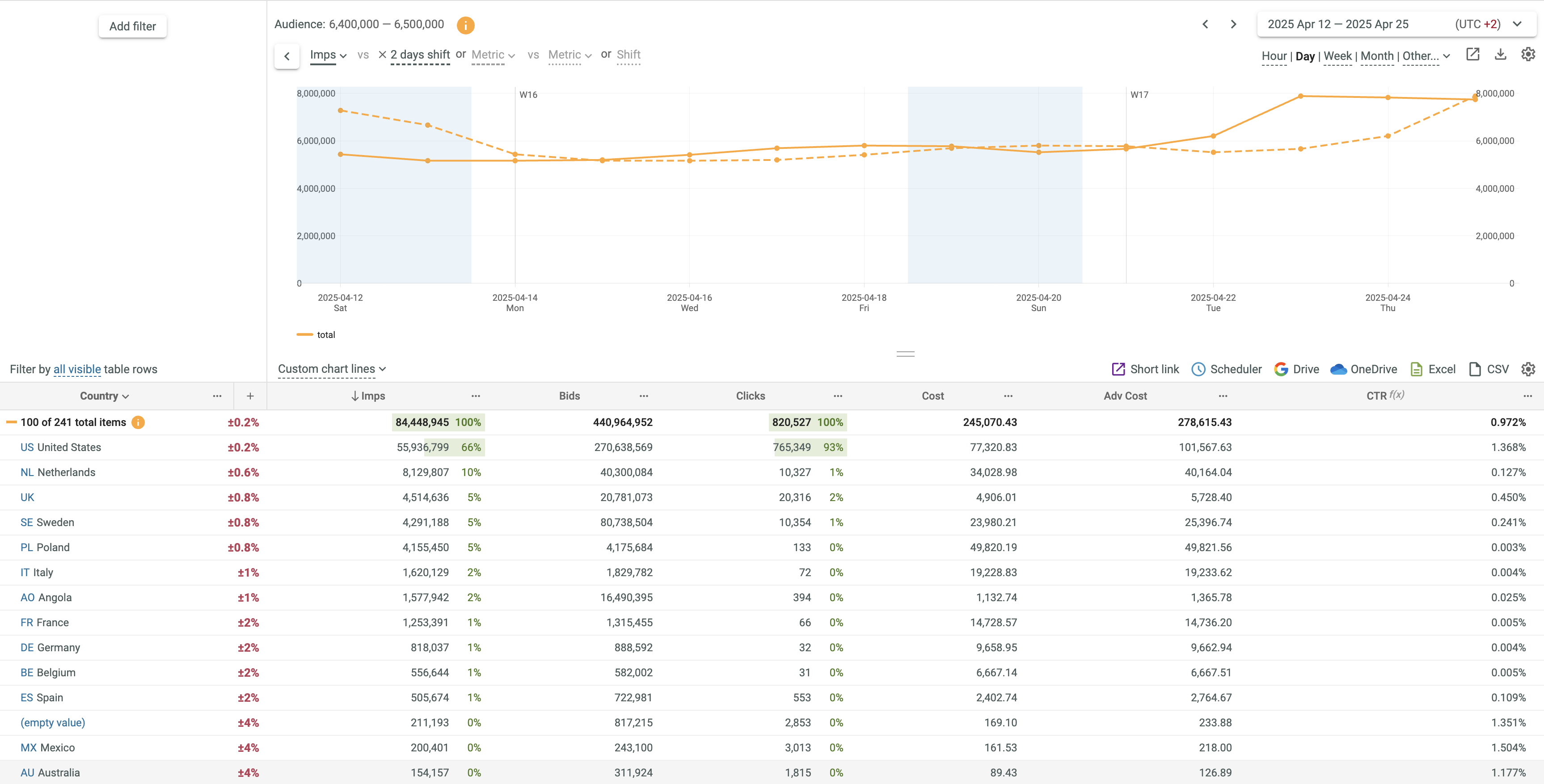 Time shift of a certain Chart Parameter is especially useful if you need to view Plots of the same Chart Parameter for different time periods (shifted by the specified number of hours, days or months) simultaneously. For example, January 2022 vs. January 2021. You can use up to 2 time shift plots simultaneously.
